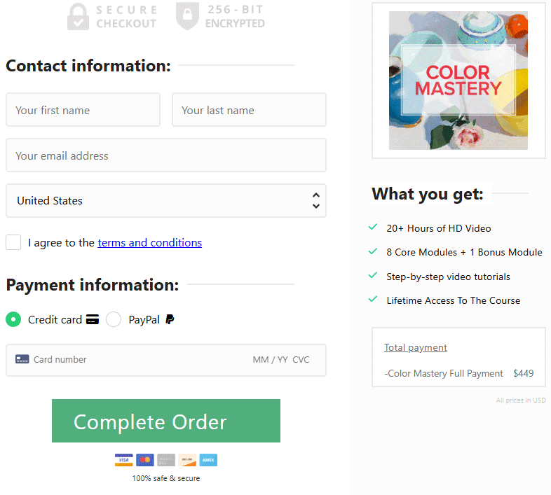The "COLOR MASTERY" course starts as soon as you complete your purchase! Shortly after your transaction is processed, you will receive an email with your login details, which you can use to access the course content immediately. This program is fully self-paced so there is no rush and no right or wrong amount of time to complete the course because you will have LIFETIME ACCESS to the course!